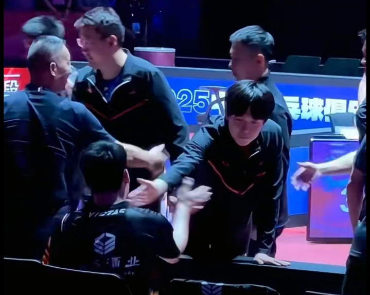 在赛后的抓手时代孙闻情态欠安,坐在场边并莫得起身与敌手抓手,是王楚钦与四川丰谷的培植与队员抓完手后发现孙闻失意地坐在板凳上,于是他伸长脖子俯身与孙闻抓手。