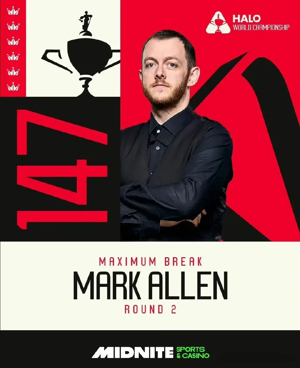 与此同期尽管在第二阶段大比分逾期马克艾伦如故轰出了147分的满分。这亦然本次世锦赛。正在第一个打出147分的球员,而况马克艾伦更是喜提4万英镑即使在本轮比赛遭到淘汰亦然不错拿到这份荣耀,在接下来的第三阶段,要是马卡艾伦不错再次轰出满分,那么他将获取14.7万英镑的弥远奖励将并列本赛季还是拿到这份非常大奖的杰克逊佩奇。马克艾伦在任业生活仅差一个世锦赛冠军就能已毕三大赛全满贯的梦念念和丁俊晖亦然在任业生活方面有所。迷失。在接下来维克林亦然有望流通挑落两大种子球员向世锦赛的八强继续挺进。另外值得一提的是马克艾伦亦然成为了斯诺克历史上第一个在三大赛的比赛当中皆打出过147分满分的球员。天然尽管是濒临淘汰然则这么的记录也将会载入汗青。